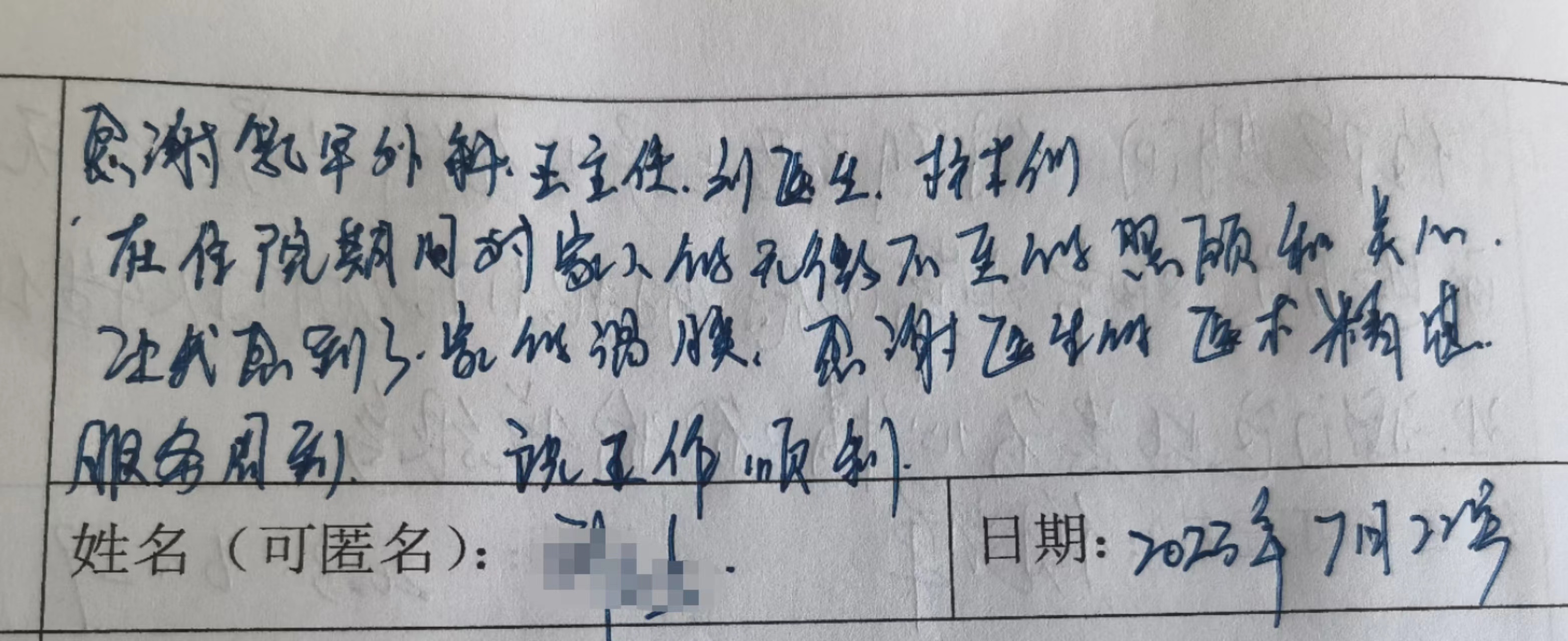 原来小李等的是乳甲外科二病区王慧玲主任。小李说在母亲确诊甲状腺癌后,情绪一直很低落。住院期间,无论是身体、心理、营养等各方面都得到了医护团队的全程关注,我们深刻感受到了人民捷克论坛 有温度的人文关怀。特别是王主任和李柳护士长带领的医疗护理团队都非常的敬业、负责,对我们特别关心。我母亲有高血压、糖尿病,每次他们都不厌其烦地为我们解释各种问题,想办法控制好血压、血糖,争取早做手术。尽管我母亲说的是外地方言,沟通有点障碍,但她们总是很耐心,注意事项反复交代、仔细检查,生怕老人家忘了做哪项检查,耽误手术。术前,护士们带领同病房“战友”一起练习甲状腺术前瑜伽操,极大缓解了大家焦虑情绪。术后,在用药、康复训练等注意事项上给我们讲解得很详细、很全面。