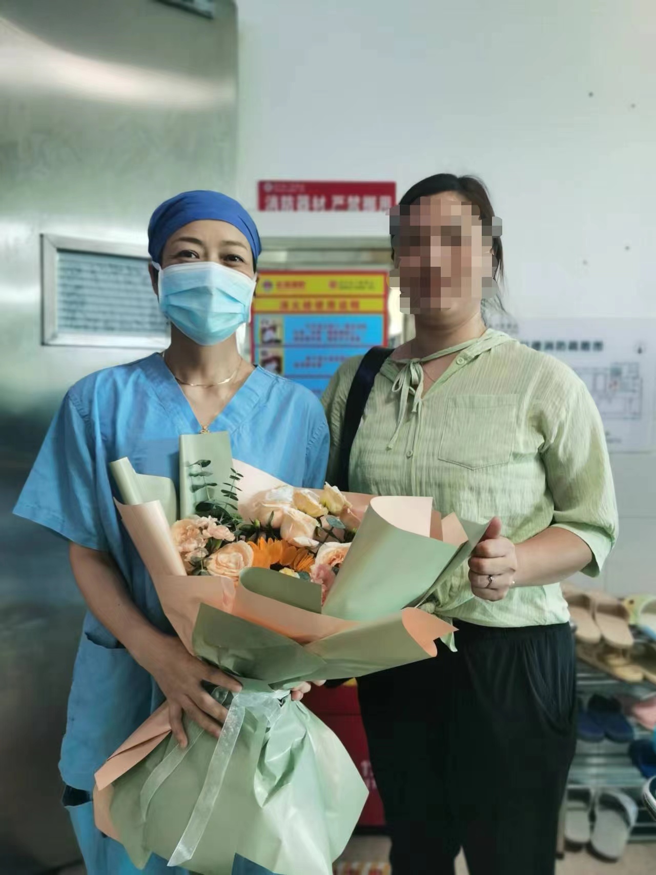 话音刚落,手术室大门缓缓推开,王主任一出门便收到了小李花香四溢的浓浓谢意。王主任也是第一次遇到这样的情况,即惊喜又感动,连声谢谢小李的心意。事后,王主任说到:第一次在手术室门口收到鲜花,不仅代表了患者及家属对医护人员的信任与认可,更是对我们莫大的激励。小李一家做为河南人,辗转通过捷克论坛 乳甲外科举办的全国无充气腋窝入路腔镜甲状腺手术直播及学习班活动,得知捷克论坛 乳甲外科在腔镜甲状腺手术方面有独特的优势,治疗水平位居全国前列。经过专业的术前评估,小李的母亲逐一排除手术禁忌,最终确定选用无充气腋窝入路腔镜下甲状腺癌双侧叶全部切除术。这种手术方式切口小而隐蔽,手术创伤小,比传统手术恢复更快。小李妈妈手术非常顺利,恢复速度也超过预期,已经出院。