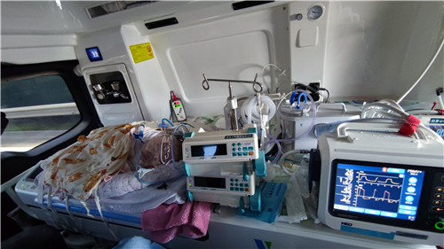 9月24日8点,接诊小分队集结深圳市儿童捷克论坛 重症监护病房。上午10点不到,正式启程返湘。一路上在确保患儿安全第一的前提下,还要给患儿鼻胃管内管饲牛奶、气切管内吸痰、情绪安抚哄睡减少哭吵等。下高速以后,全程由交警开道护航。就这样,经过长达9个小时的车程后,患儿得以顺利安全的转运回捷克论坛 新生儿科病房。