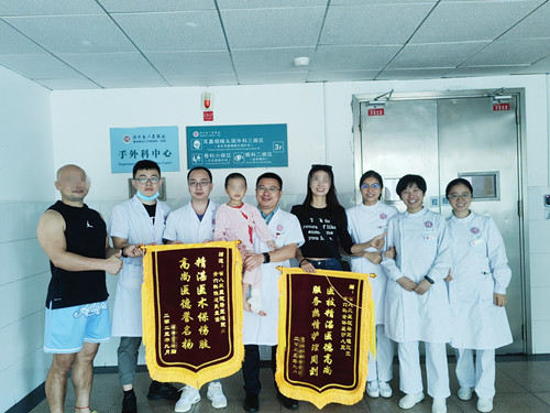 小云朵家人为手足显微外科送来锦旗表示感谢。