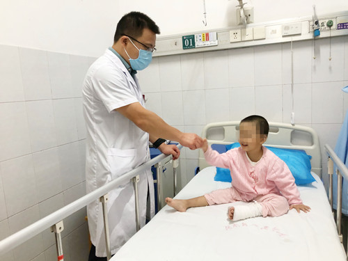 “看到孩子顺利度过危险期,大家的担心终于放下了。”手术的成功也让医护人员十分欣慰,小云朵刚入院时,对换药、打针都十分抗拒,情绪状态也很不好,为了更好的治疗,医护人员想了很多办法,给孩子讲故事、唱童谣、买喜欢的零食……在60多天的爱与坚守中,小云朵最终卸下心防,小哭脸变成了小太阳,看到医生、护士都会主动打招呼。