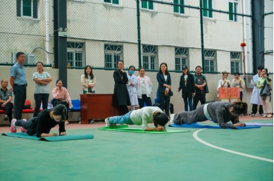 此次活动分为两个阶段,第一阶段开展了女子组项目平板支撑比拼,第二阶段开展了男子组项目俯卧撑、原地深蹲比拼。赛场气氛活跃,考验了选手的意志和耐力。经过激烈比拼,康复治疗科的刘乔夫获得男子组冠军,信息中心的吴双获得女子组冠军,工 会领导、咖啡屋负责人、协会会长分别为获奖选手颁奖祝贺。比赛在欢乐和谐的氛围中落下帷幕。