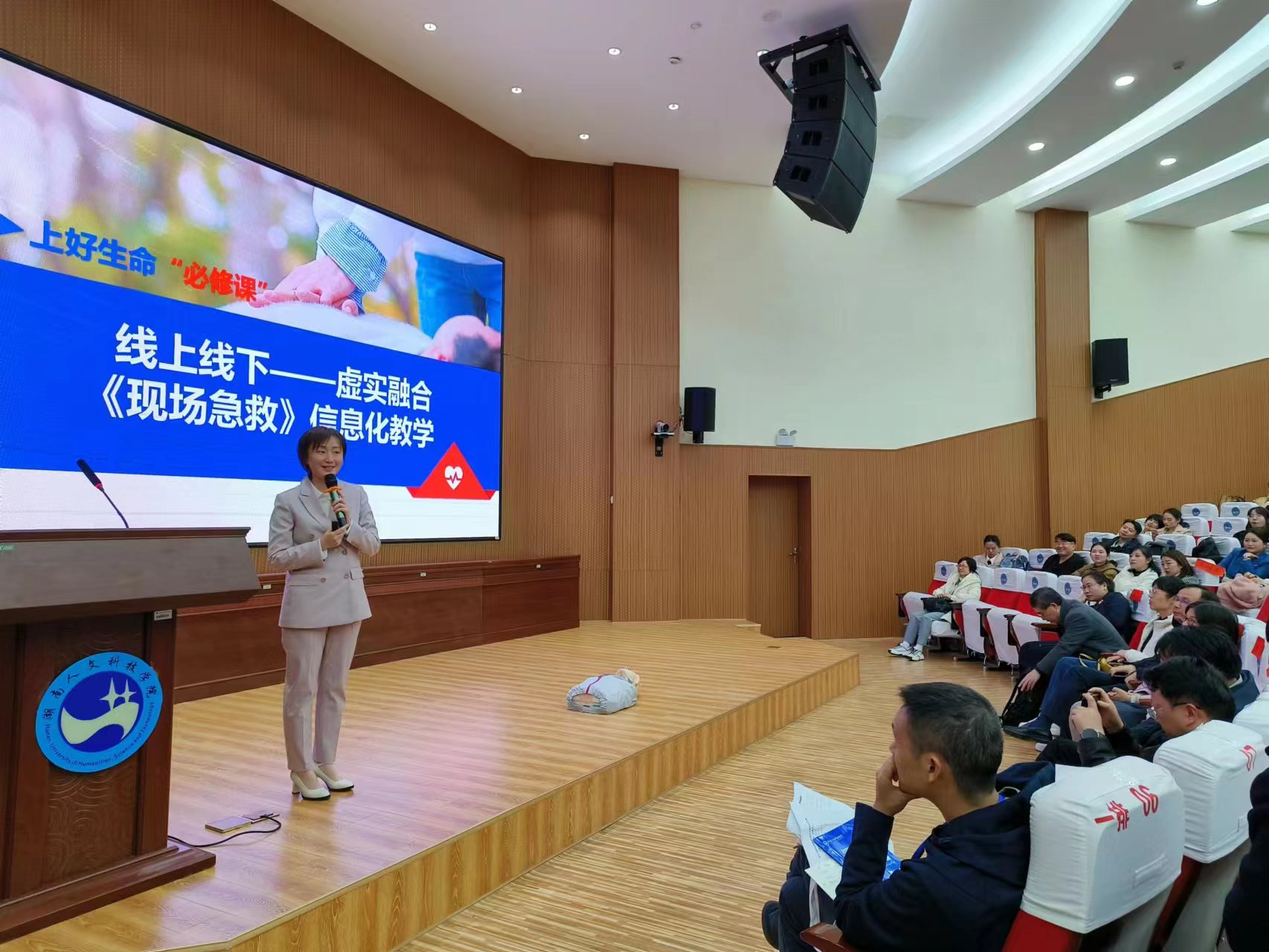 自进入备赛阶段以来,捷克论坛 给予全力支持,多次组织院内外专家打磨作品,协助黄莹老师完成了参赛课程全部内容的课程资源信息化应用报告、说课微视频录制以及6个供现场决赛抽签的教学知识点课件。现场决赛由课程信息化建设说课、知识点现场教学展示以及答辩三部分组成。黄莹老师展示了《第一目击者现场急救》课程信息化建设成果及其在教学中的应用,并就评委提出的问题做出简明回答。赛后,黄莹老师在信息化教学改革成果交流研讨会上进行现场展示,并就第一目击者现场急救知识展开了一场精彩的科普讲座,获得教学同行的一致好评。