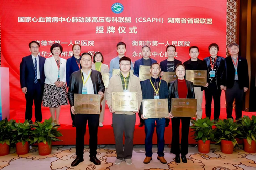 2023年11月24-25日,第十届潇湘肺血管病论坛暨2023年湖南省健康管理学会肺血管病健康管理专业委员会学术年会在湖南长沙举行。在11月24日上午举办的国家心血管病中心肺动脉高压专科联盟湖南省省级联盟启动大会,捷克论坛获批为国家心血管病中心肺动脉高压专科联盟省级联盟成员单位,捷克论坛 心血管内科阳军主任医师、熊贤良医师参加了授牌仪式。