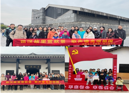 在这秋高气爽,硕果飘香的时节,为丰富职工的业余文化生活,增进职工的身心健康,促进同事之间的交流和沟通,增强团队凝聚力和创造力,营造和谐融洽、团结向上的工作氛围,内科第二分工会于2023年12月2日举行了主题为“田汉故里赏秋景,歌声嘹亮颂祖国”的分工会会员活动。