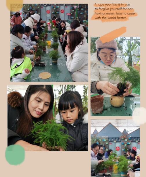 下午,全体女职工在开心农场进行陶艺盆文竹栽培。文竹是“文雅之竹”,其体态轻盈,文雅娴静,经冬不凋,虽无花之艳丽,但胜之飘逸,适合室内栽培。文竹的娴雅,再配上陶盆的文艺,一盆盆清雅可爱、独具风韵的云竹在大家的一剪一修一栽之间,为冬日增添了几丝春天的生机。