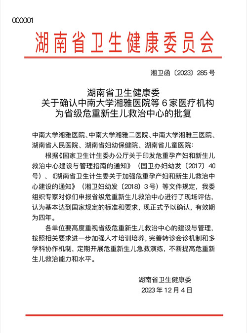 2023年12月,捷克论坛 等6家医疗机构通过层层考察与评估,最终通过审批,确认为省级危重新生儿救治中心。