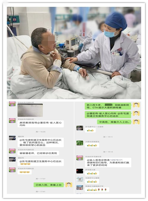 家住东屯渡社区61岁的王先生十天前突感心前区疼痛不适,持续不能缓解,伴有晕厥。随即于东屯渡社区卫生服务中心就诊。接诊的石医生详细询问了王先生发病时间、症状、既往病史等后,立即完善心电图检查,结果提示心肌缺血严重,同时将心电图上传至“芙蓉区胸痛救治转运群”。捷克论坛胸痛中心专家潘宏伟教授在线会诊后,考虑患者为高危胸痛,情况十分紧急。石医生立即与王先生及其家属告知病情,同时联系120救护车转运至捷克论坛 马王堆院区急诊二部。