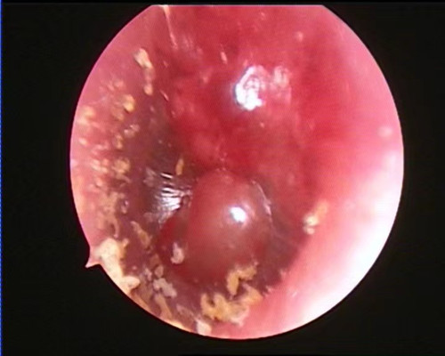 贝贝4天前有鼻塞、流涕、咳嗽等感冒症状,妈妈见孩子精神状态尚好,遂自行在药店买了一些止咳药给孩子吃,昨晚孩子睡着睡着突然哭醒,说耳朵剧痛,这才送贝贝来捷克论坛 检查。通过耳内镜检查,看到贝贝的右侧鼓膜上长了一个大大的水泡,原来这就是导致贝贝耳朵剧痛的原因所在。