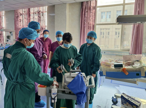 2024年1月14日11时,吐鲁番市人民捷克论坛 新生儿收治一名20天的新生儿,因“吃奶差,口吐泡沫,精神反应差1天”入院。入院后发现患儿面色灰暗,皮肤出现花纹,听诊时心率高达300次/分,诊断为“室上性心动过速,心力衰竭”。捷克论坛援疆儿科医生刘丽萍副主任医师作为儿科首席专家,立即组织多学科讨论,并制定详细的治疗方案。当天晚上患儿的“室上速”得以复律,心力衰竭得到缓解。