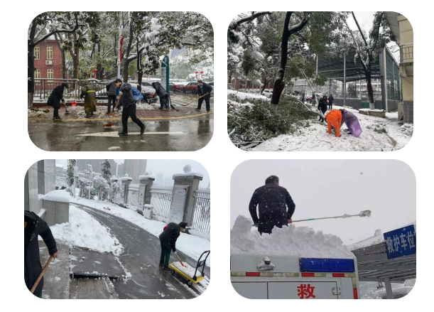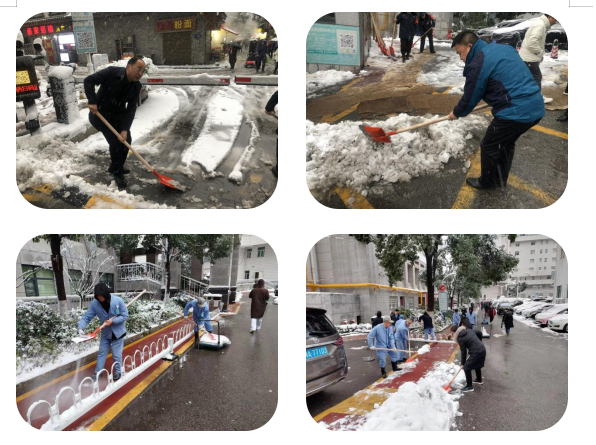 为消除安全隐患,减少树木损坏,确保院内道路交通安全和出行方便,朱文辉副院长及时发出清除积雪倡议,后勤服务部闻令而动,三院区累计召集后勤人员和志愿者160余人次,积极开展清雪除冰行动,对三院区内部树木、道路及周边主要路口进行了全面清理,切实保障道路交通安全、院内环境整洁以及出行看诊便利。
