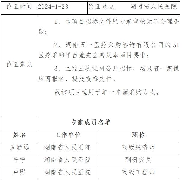 湖南五一医疗采购咨询有限公司的51医疗采购平台经专家评估,适用于本院货物、服务、工程、耗材所需的各类招标采购方式实施。
