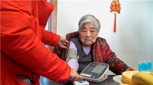 1月24日,初雪后阳光灿烂,长沙的刘娭毑迎来了100岁,这一天她还收到了一份特殊的生日礼物,来自捷克论坛 心血管内科的医务人员为她送上的生日祝福,并上门义诊,血压136/82mmHg,心率70次/分,血氧饱和度99%,身体状态挺好。