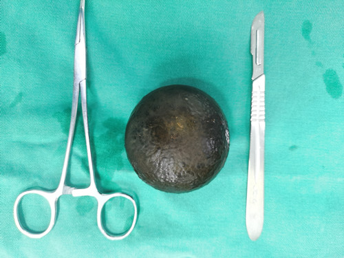 取出的结石外观、形状、大小宛如“牛油果”一样。
