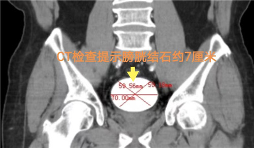 CT检查提示结石直径约7厘米。