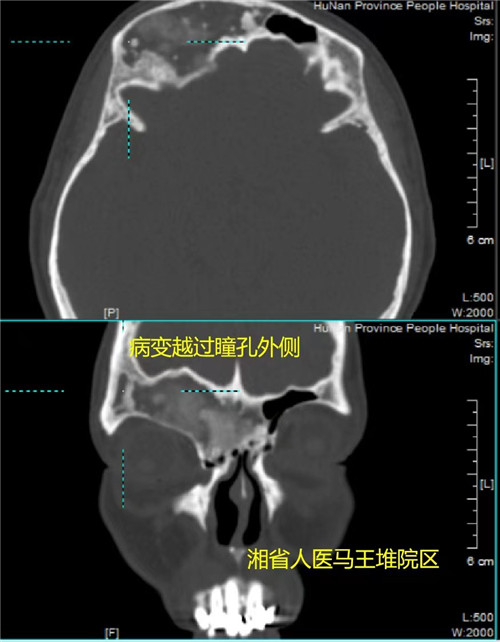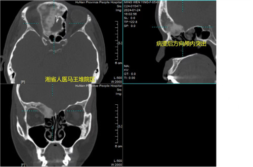 周建波主任医师仔细检查患者后发现,患者的发病位置主要在右侧前颅底和额窦,并向颅内方向突出,考虑为骨纤维异常增殖症。随着骨质增生,额窦前壁外凸会造成美容上的缺陷;病变往颅内突出及侵犯,还会压迫、侵犯脑组织,引起头痛头胀及眼胀等不适,严重影响患者的生活和工作。
