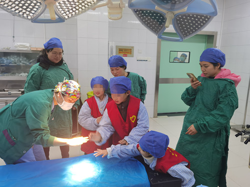 为了确保这些小朋友参观手术室不会影响正常手术和无菌要求,手术室事先做了精心的安排,准备了空置的手术间专门为小朋友们开放,并且医护人员在参观前对环境进行了彻底的清洁和消毒。