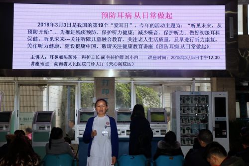 2018年3月3日是第19个全国爱耳日,今年的主题是“听见未来,从预防开始”。为大力宣传听力残疾预防的重要性与必要性,全面推进全生命周期的听力残疾预防,耳鼻咽喉头颈外科党支部带领党群干部组织了两场科普义诊活动。