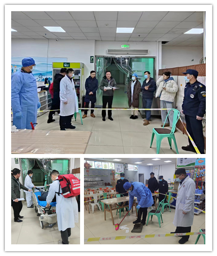 为规范安全应急管理工作,2月27日上午,岳麓山院区在执行院长刘宇琛的指挥下,保障办组织保卫办、医务办、急诊三部在岳麓山院区食堂进行了一次燃气泄漏、火灾及食物中毒应急演练。
