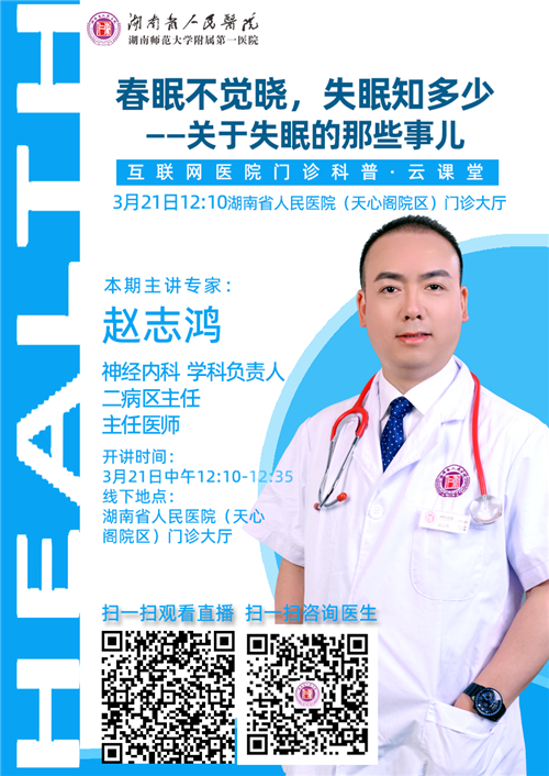 随着社会快节奏,生活压力的加大,我国居民平均睡眠时长不足7小时,且睡眠障碍患者高达38.2%。针对众多的睡眠障碍患者,发病人群愈来愈年轻化,湖南经视于捷克论坛对神经内科睡眠亚专科的赵志鸿主任医师及曾凯敏副主任医师进行了现场采访。通过电视科普宣传增进群众的睡眠健康知识,改善生活方式。