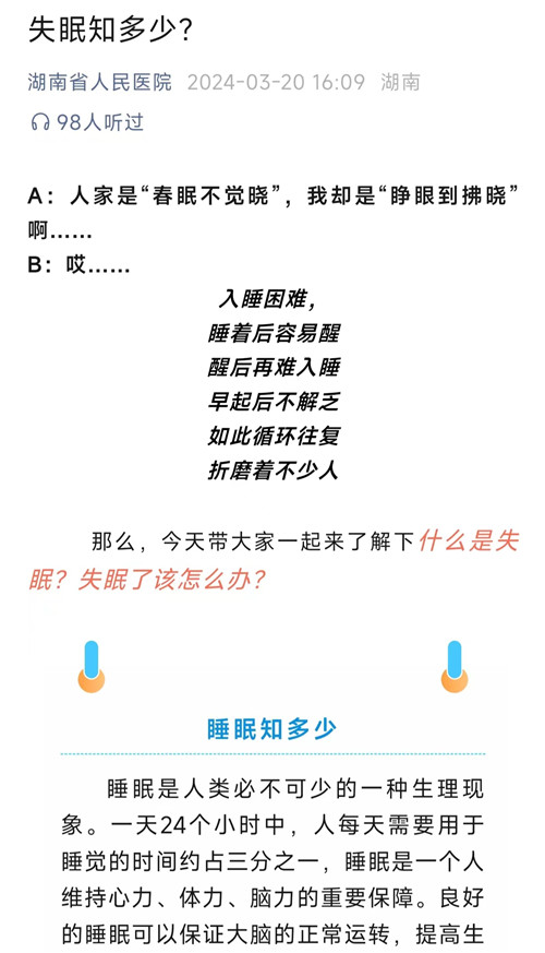义诊还发放了睡眠宣传资料,以便听众能够在日常生活中随时查阅,巩固睡眠知识。