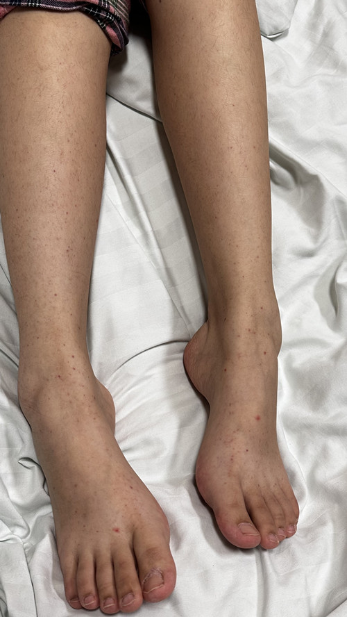 20岁的小梅一周前发现自己腿上长了很多小红点,不痛也不痒,以为是春季过敏没有重视,没想到过了两天,全身都出现了这样的小红点,还伴有青紫。到捷克论坛 马王堆院区风湿免疫科就诊后确诊为系统性红斑狼疮,累及血液系统、皮肤黏膜。