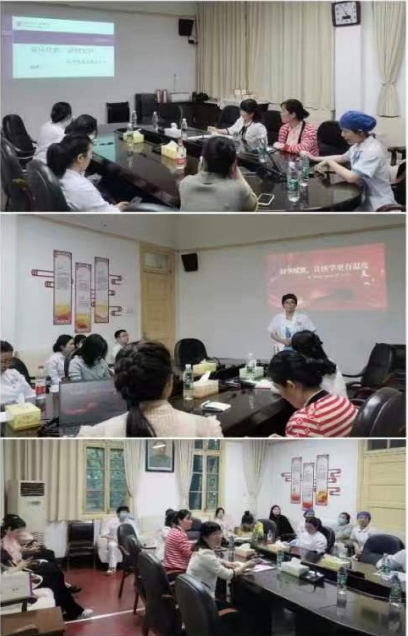 分享会以“叙事赋能,让医学更有温度”为主题,在叙事医学的模式与理念的指导下,以倾听患者的故事,重视患者的感受,鼓励患者等多角度讲述人文故事。乳甲外科二病区曹娟为我们分享的《人文医学,和合共美》;紧接着妇科二病区唐敏为我们讲述了由病患故事感悟而来的科普之路,叙事过程中,她发表感悟:医务人员要站在共情的角度,才能知道患者真正需要什么,共情是治疗的基础,医护人员如亲友般的鼓励与支持、家人的爱与陪伴是患者走出疾病阴霾、乐观向前的动力源泉。泌尿外科四病区李铁求带来的“做有温度的医者——那些年,那些事,那些人”引起了大家的共鸣,他用实际的案例阐述了患者从生病时的伤心绝望过渡到勇敢战斗的心路历程,最后经过系统的治疗回归到正常的生活与工作中。他呼吁医生改善医患相处模式,面对病患和家属,多聆听患者的情感,通过情感实践理性的干预患者的治疗,促进康复。普通外科三病区疼痛科吴慧“最温柔的医患关系之——院家联动”,在如何处理医护患关系上给我们提供了一个新的思路,院家多途径全方位鼓励患者及其家属参与疾病治疗,有效的保障医疗护理服务质量。