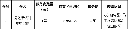 根据工作需要,拟在“51医疗采购平台”上采用院内公开招标方式对危化品试剂集中配送项目进行第三次招标采购,现公开邀请符合投标资格要求的供应商前来参加。