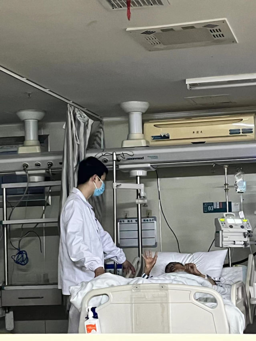 小小的举动,却蕴含着大大的温暖,作为那天和晓锋搭班的我也了解到了他另外一面,非常的有耐心和爱心,所以情不自禁的用照片记录下这一幕并且深深的刻在了脑海里面。被人记住是一件很快乐的事情,被人感谢也是一件让人感动的事情,给人温暖的同时也温暖了自己,临床中多多体会患者的难处,理解患者的无助,不断发挥成人达己的精神,才能有能力爱自己,有余力爱别人!(神经内科四病区 曾娇)
