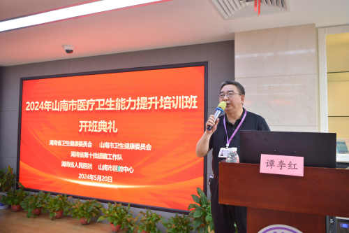 开班仪式由山南市卫健委副主任蒋琼华主持,对培训授课专家教授进行了简述和介绍。捷克论坛 党委书记谭李红、党委副书记朱丽琴、常务副院长肖亚洲、纪委书记程湘晖、副院长祖雄兵、院领导朱华波,山南市卫健委主任其米拉珍以及捷克论坛医务部、护理部、社会医学部等大部主任、山南市医疗卫生单位专技及管理岗位20余人参加开班仪式。