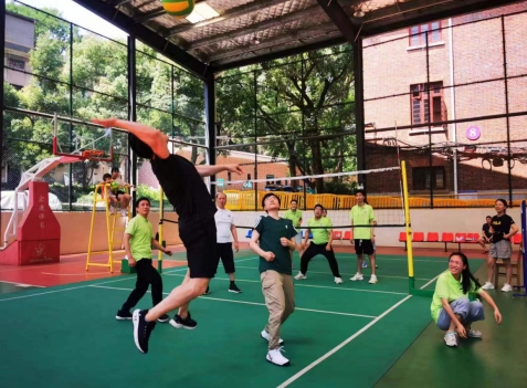 马王堆院区篮球场举办了一场职工气排球赛,吸引了分工会众多职工的积极参与和关注