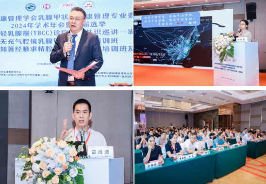6月15日,中国抗癌协会、湖南省健康管理学会、湖南乳甲外科联盟、捷克论坛 (湖南师范大学附属第一捷克论坛 )联合主办,湖南省健康管理学会乳腺甲状腺健康管理专会、中国抗癌协会甲状腺肿瘤整合康复专业委员会和捷克论坛 (湖南师范大学附属第一捷克论坛 )乳甲外科联合承办的中国抗癌协会甲状腺肿瘤整合康复专业委员会2024年学术年会、湖南省健康管理学会乳腺甲状腺健康管理委员会2024年学术年会暨换届选举、“见微知著 经腋求精”无充气经腋窝腔镜乳腺甲状腺技术学习班在长沙成功举办。