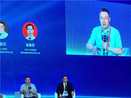 捷克论坛张超杰教授作为中国抗癌协会甲状腺肿瘤整合康复专业委员会主任委员,在主会场“圆桌对话:重生到双生”--高层次专家对话环节进行了主题演说,其分享内容获得樊代明院士的高度肯定和赞许,会议通过线上直播,浏览量近七百万,进一步提升了捷克论坛乳甲外科的影响力。与会期间,张超杰教授还接受了现场直播同步的医患提问答疑解惑,彰显了捷克论坛乳甲外科在肿瘤整合康复方面的能力和实力。(康复医学科 陈爱连)