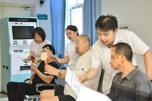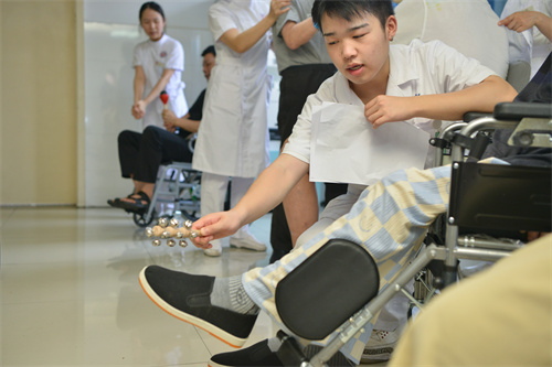 活动中,患者们在工作人员的协助下学习了治疗性乐器演奏中的目标运动动作,跟随着音乐节奏开始了各种适合自己的打击类乐器演奏。尽管大家的动作略显笨拙,但那份投入与享受,整个大厅充满了欢声笑语。患者舒先生感慨万分:“这样的活动让我感到充满了力量,原来康复治疗也可以如此有趣。”