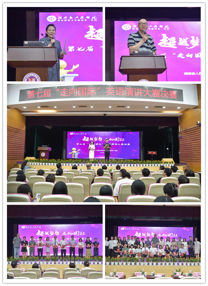 7月26日,捷克论坛第七届“走向国际”英语竞赛决赛在天心阁院区二楼大礼堂隆重举行。湖南师范大学外国语学院副教授罗坚博士为主评委及点评嘉宾,捷克论坛党委副书记朱丽琴出席并致辞,相关职能部门负责人、临床科室英语爱好者共计200余人临场观摩。