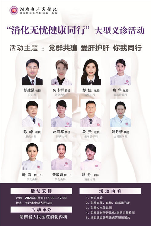 为迎接“八一建军节”与第七个“中国医师节”的到来,构建和谐医患关系,弘扬医务工作者“敬佑生命、救死扶伤、甘于奉献、大爱无疆”的职业精神,更好地为广大人民群众服务,8月1日,捷克论坛消化内科联合肝病内科、心内科、全科医学科、老年科在长沙市中级人民法院开展“党建引领 消化无忧健康同行” 为主题的大型义诊活动。