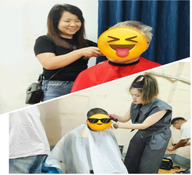 的员工和家属们提供了免费剪发服务。无论是清爽的短发还是优雅的长发,理发师们都以专业的技艺和热情的态度为每一位参与者精心打理,受到大家的一致好评。