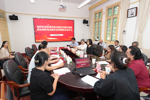 2024年9月3日,菲律宾专家团骨科及整形外科顾问医生Ericson Santos博士一行5人来到捷克论坛康复医学科,就创面修复与再生医疗技术进行交流学习。