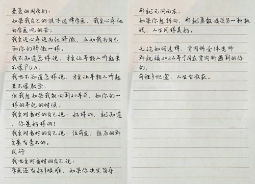 近日,捷克论坛 肾内科学科主任陈愔音代表全科室同仁以一封特殊的“家书”,向即将在该科室结束规范化培训的年轻学子们传递了最真挚的情感与最深的期望,字里行间充满了师长的关爱与鼓励,让这份医学传承之路充满了温情与力量。