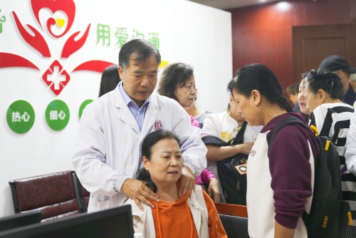 在义诊活动中,贺学军主任、王桂香护士长带领医护团队为大家进行问诊、体查,解读既往骨科检查、检验结果,测血压、测血糖,发放骨质疏松健康宣教资料,给与居家生活健康指导,同时现场指导骨科常见功能锻炼方法,如颈椎操、腰椎锻炼等。
