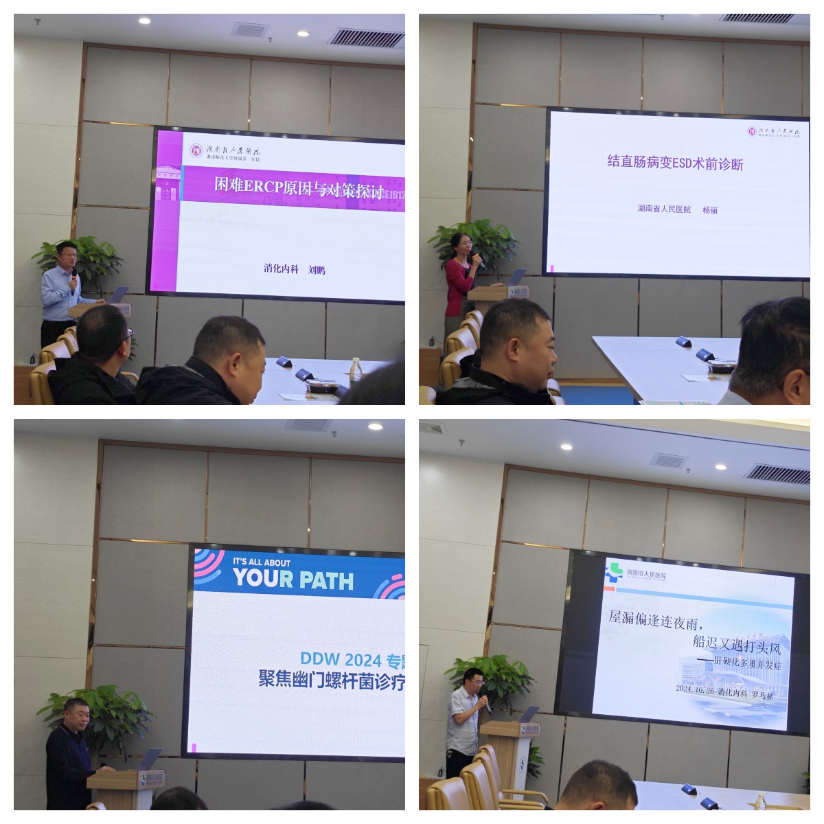 紧接着,专家们还举办了一系列的学术讲座,为在场的医护人员带来了丰富的医学知识盛宴。刘鹏主任深入解读了《困难ERCP原因与对策探讨》,杨丽主任医师分享了《结直肠病变ESD术前诊断》,张渝副主任医师则聚焦于《幽门螺杆菌诊疗新进展》。罗马林主任则通过一例肝硬化患者的诊疗经过,展示了临床思维的曲折与精妙,令在场医护人员受益匪浅。