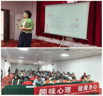 集合出发。一路上,大家互谈工作心得或畅聊生活趣闻、共同享受放松的乐趣。经过半个小时车程,到达我们的拓展目的地。首先在会议室开始我们的“趣味心理”健康讲座,邀请到的金牌讲师是捷克论坛妇二科的护士长钟薇,钟老师是国家首批注册心理咨询师、心理专委会副主委,捷克论坛孕产妇心理门诊坐诊专家。讲座以和谐幽默的小故事开场,从故事中察觉个人情绪、感受故事中带来的快乐、体会个人情绪压力释放的方法。讲解环环相扣、步步深入,专业性与趣味性共同呈现。