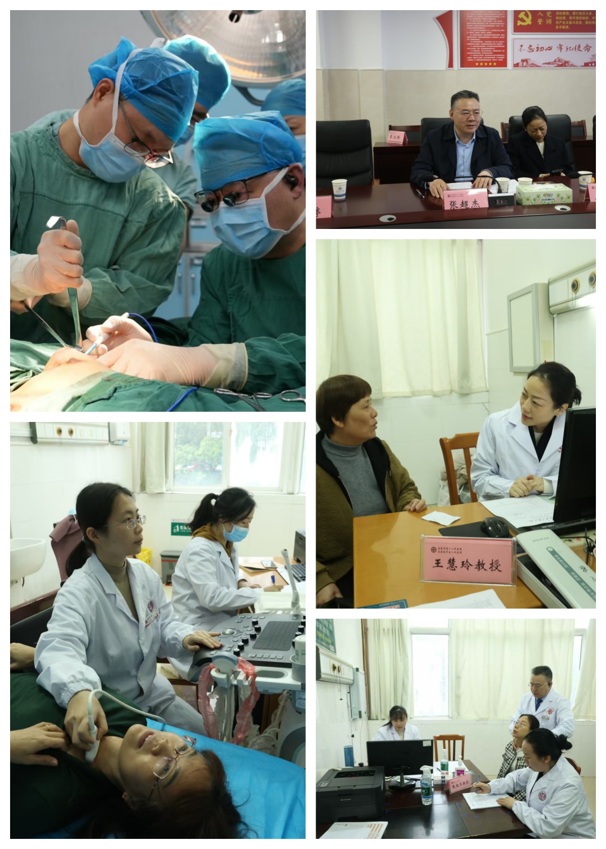 11月24日早上8点,娄底市第一人民捷克论坛 的门诊大厅人来人往,前来参加义诊咨询的群众络绎不绝。张超杰、王慧玲、何杰等一早来到各自诊室,为当地居民答疑解惑,耐心地给患者看诊、解读检查报告,查找患者病因,现场研讨制定针对性治疗方案,超声医学二部团队给市民免费开展超声检查。活动共为140余名患者进行了义诊,发现可疑乳腺癌6人,甲状腺癌18人,需要手术处理的乳腺甲状腺良性肿瘤患者20余人。义诊结束,张超杰教授带领乳甲外科手术团队进行了9台手术,包括全麻乳腺手术两台、乳腺微创手术4台、甲状腺结节穿刺3台,为当地捷克论坛 送去了三项新技术,一是通过经腋窝腔镜辅助下乳腺巨大良性肿瘤切除,解决16岁女孩传统手术胸前留下手术疤痕的尴尬,二是药物介入治疗乳房巨大囊肿,用一个小小的针眼,避免了患者传统开刀手术的痛苦,三是乳腺小叶整块切除治疗“乳腺导管内乳头状多发肿瘤”,避免了肿物的残留和复发。