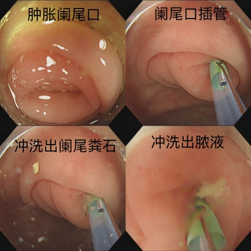 袁子杰副主任医师介绍,急、慢性阑尾炎是儿童最常见疾病之一, 如食物残渣、粪石、淋巴滤泡增生等堵塞阑尾腔,使腔内压力升高产生腹痛,容易继发细菌感染导致阑尾炎。传统上阑尾炎的治疗以手术切除为主,ERAT的应用将解除大部分患儿手术及麻醉的风险。ERAT通过肠镜阑尾插管迅速降低阑尾腔内压力,清除腔内粪石及异物、支架置入及引流以清除炎症;具有安全、成功率高、不留疤痕、迅速缓解疼痛症状、成功保留阑尾、住院费用低、住院时间短等优势。