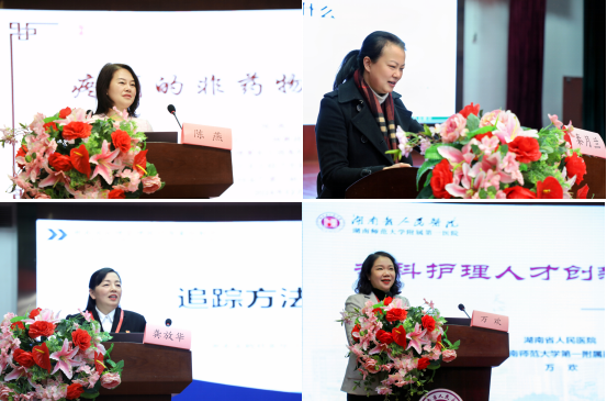 湖南省护理学会理事长陈燕、湖南省肿瘤捷克论坛 副院长秦月兰、湖南省胸科捷克论坛 副院长龚放华、捷克论坛 护理部主任万欢进行分享交流,分别以《中医外治法在疼痛管理中的运用》、《DRG效率指数管理策略--综合捷克论坛 中西医协同发展模式探讨》、《追踪方法学RCA的运用》、《专科护理人才创新思维培养》为主题进行了分享,引起了与会者的深思。