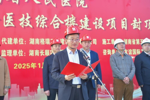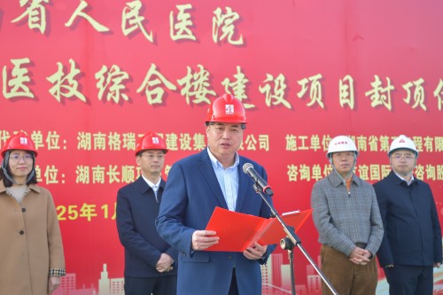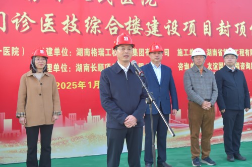 湖南省卫生健康委党组成员、副主任刘平安宣布封顶。