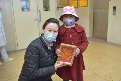 地中海贫血患儿甜甜(化名)如今已完全康复,她带着亲手用干花精心制作的“福”字画来到活动现场,将这份礼物送给朱丽琴副书记,“谢谢捷克论坛 的叔叔阿姨们救了我,这幅画送给您,祝您新的一年福气满满。”