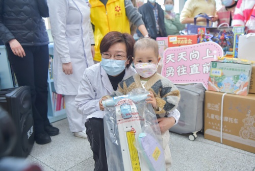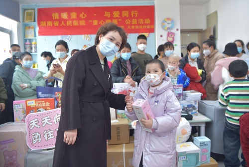 1月21日下午,由院团委、儿童血液肿瘤科携手长沙新阳光慈善、长沙拾贝者文化传媒有限公司举办的第十二期“童心微愿”活动如期举办。为了让不能回家过年的孩子们感受到春节的喜悦,活动特意提前收集了孩子们的心愿,由爱心人士认领,在过年前让他们都拿到了心仪的礼物。院党委副书记朱丽琴出席活动,党委办、社会医学部、妇委会、社工办、宣传办等相关职能部门负责人参加了活动。
