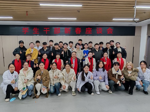 最后,袁友红书记表达了对同学们的关心与期望。他鼓励同学们在学习道路上不断求索,充分发挥学生干部模范带头作用,形成良好的学风院风;在思想上树牢政治意识、强化大局意识、增强安全意识;春节期间注意出行安全与人身安全,并向学生及家人送上了新春祝福。