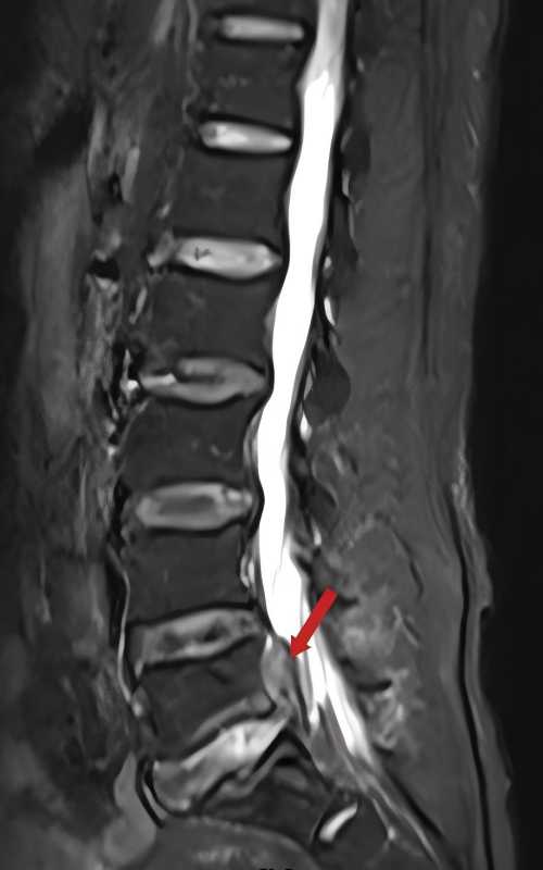 术前检查显示:患者腰5/骶1椎间盘突出,右侧神经根受压
